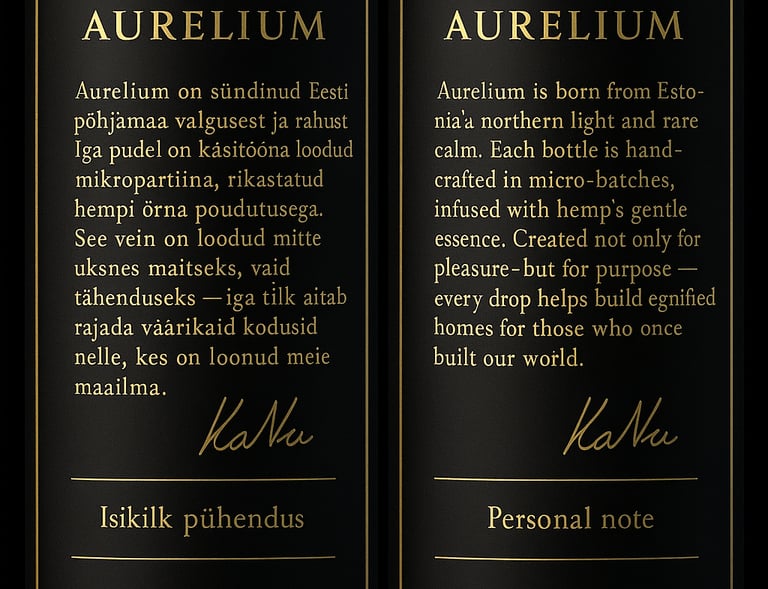 Each bottle is crafted in dark glass to protect the wine and reflect its exclusivity. The front label carries the KaNu signature and the collection name — Aurelium or Lucidium. Every bottle is hand-numbered, making each one a unique collector’s piece.
